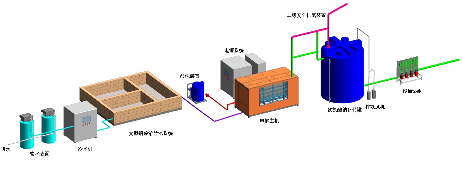 電解鹽水型系統(tǒng)主要組成部件: